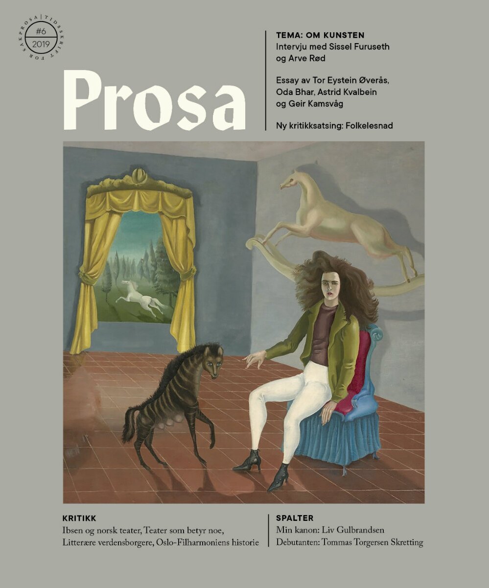 – Kunsten gir uttrykk for rørsler i samtida, ofte nærmast på direkten, og med det høve til å bearbeide all slags livserfaringar. Men utan samtalen som kritikken innbyr til, kan erkjenningane i dei estetiske opplevingane drukne i stadig nye opplevingar, skriver Merete Røsvik i sin leder i nytt Prosa, som er ute nå.